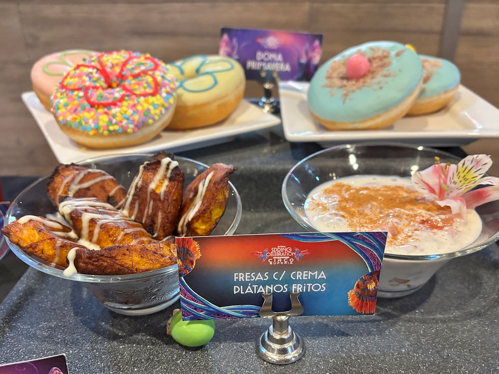 • Fresas con crema, funnel cake de galleta Lotus y churros de temporada